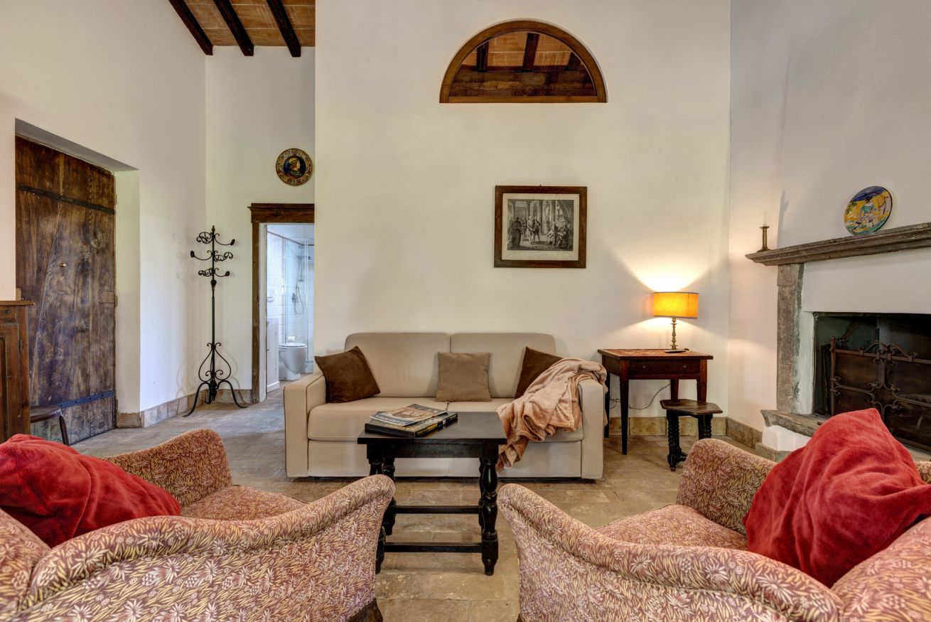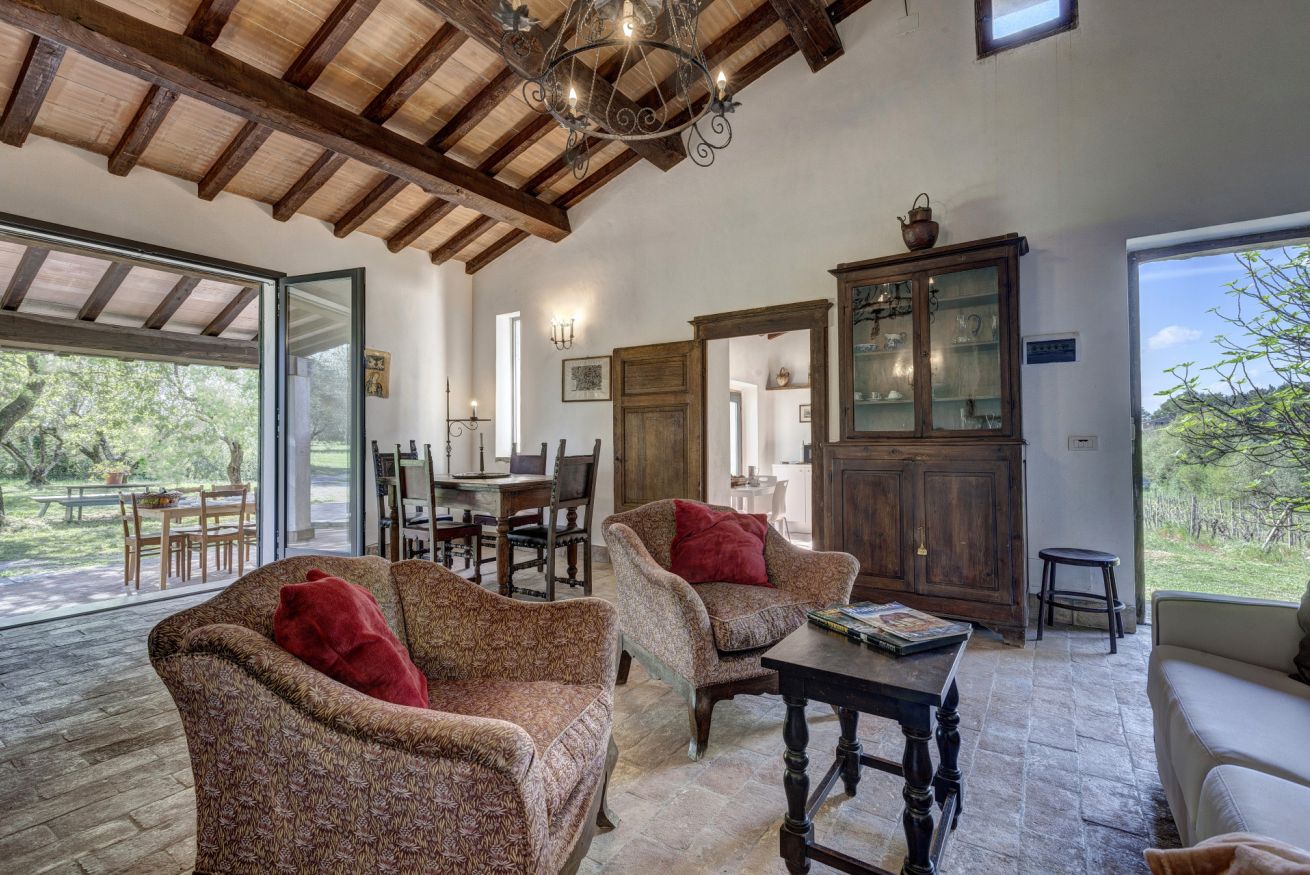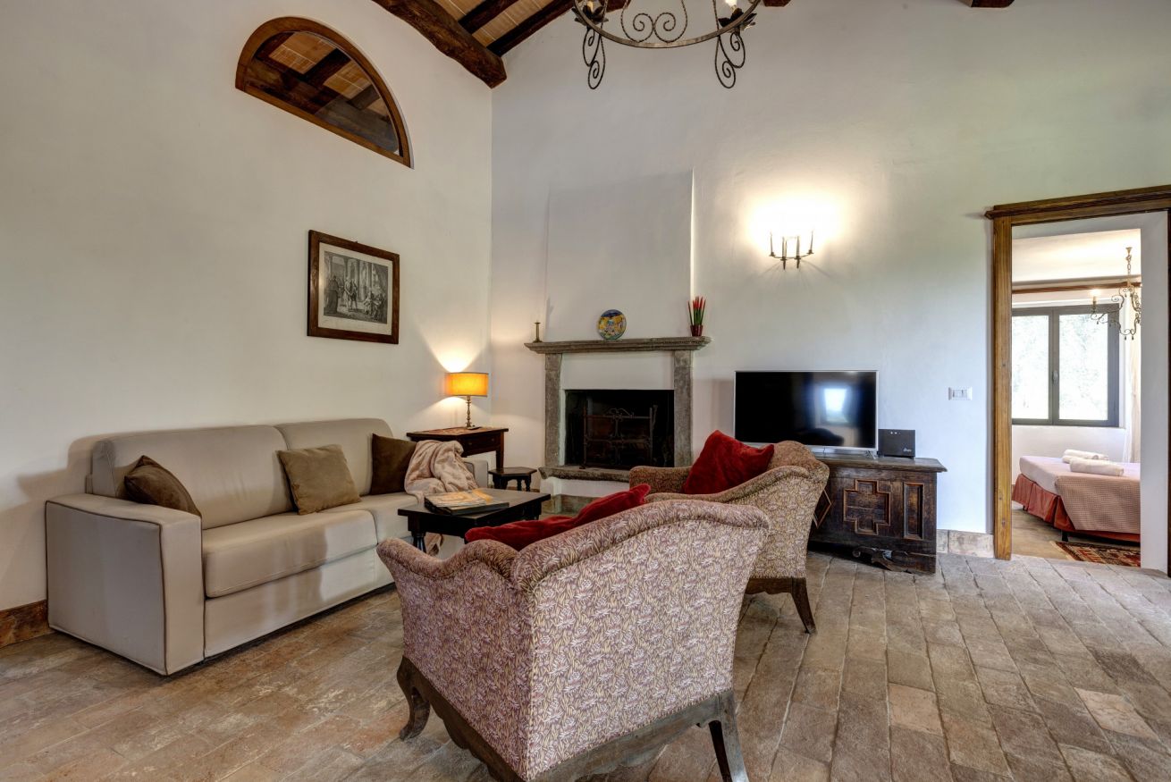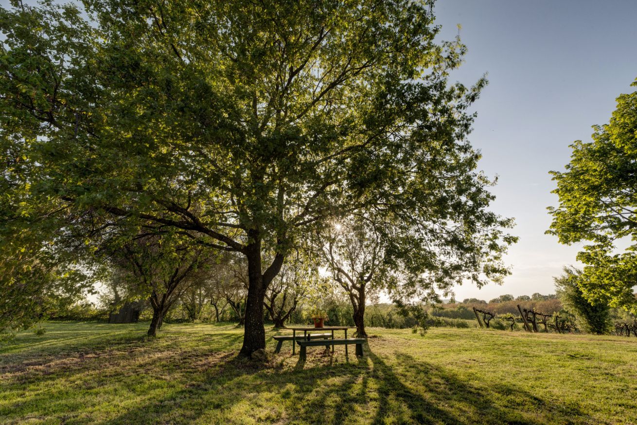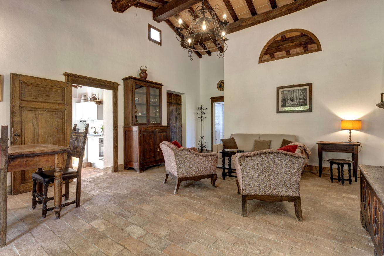 The bedrooms are spacious and airy, furnished with period furniture and a touch of "arte povera" that recalls peasant traditions. The large windows offer a priceless view of the surrounding vineyards and olive groves.