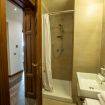 The entrance leads to a double bedroom equipped with a large wardrobe. Continuing on is the first bathroom complete with shower. The corridor also leads to the second bathroom, also equipped with shower.