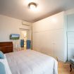 The kitchen with dining table is fully equipped and includes a regular and microwave oven, kettle, dishwasher, coffee machine and other essentials. A panoramic balcony completes the living area, making it perfect for a comfortable stay.