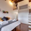 The apartment has a mezzanine bedroom with two double beds, a bathroom with shower and a fully equipped kitchenette. The apartment is completed by the large living room, with sofa bed, and a wonderful view over the rooftops of Florence.