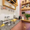 The entrance welcomes you into a bright living room with a large sofa perfect for relaxing, a TV and a space dedicated to the dining area. The kitchen, separate from the rest of the room, is fully equipped and has everything you need, from a fridge and microwave to a dishwasher and coffee maker, to make you feel at home.
