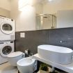The apartment consists of an elegant and bright living room with double sofa bed and flat-screen TV, which leads to the large dining room with fully equipped open kitchen. A short corridor leads to the two large and bright bedrooms with double beds and the single bedroom. The apartment is completed by two bathrooms with shower and a half-bath.