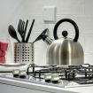 The open space features the living room with a fully equipped kitchen and a comfortable pull out sofa bed for two people.