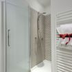 The flat also features heating system, a washing machine and a bathroom with shower box.