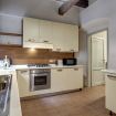 The fully equipped kitchen with traditional oven and microwave, coffee machine, kettle and toaster is adjacent to the dining room.