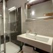 The structure is completed by a bathroom with shower cubicle and a toilet.