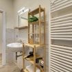 A further bathroom develops along the corridor, adjacent to a bedroom with double bed and an open space with a fully equipped kitchen and a pull-out sofa bed for two people.