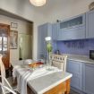 The corridor leads to the kitchen with precious marble tops, a bedroom with double bed, large bathroom with shower, a second bedroom with single bed and a third bedroom with double bed and large private bathroom with shower.