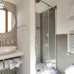From the corridor develops a bright bathroom with shower, a room with exposed beams with a double bed and a second bathroom, private and with shower.