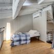 From the living room, through a staircase, you enter the mezzanine where there is a single bed overlooking the kitchen, and a double bed, overlooking the living room.
